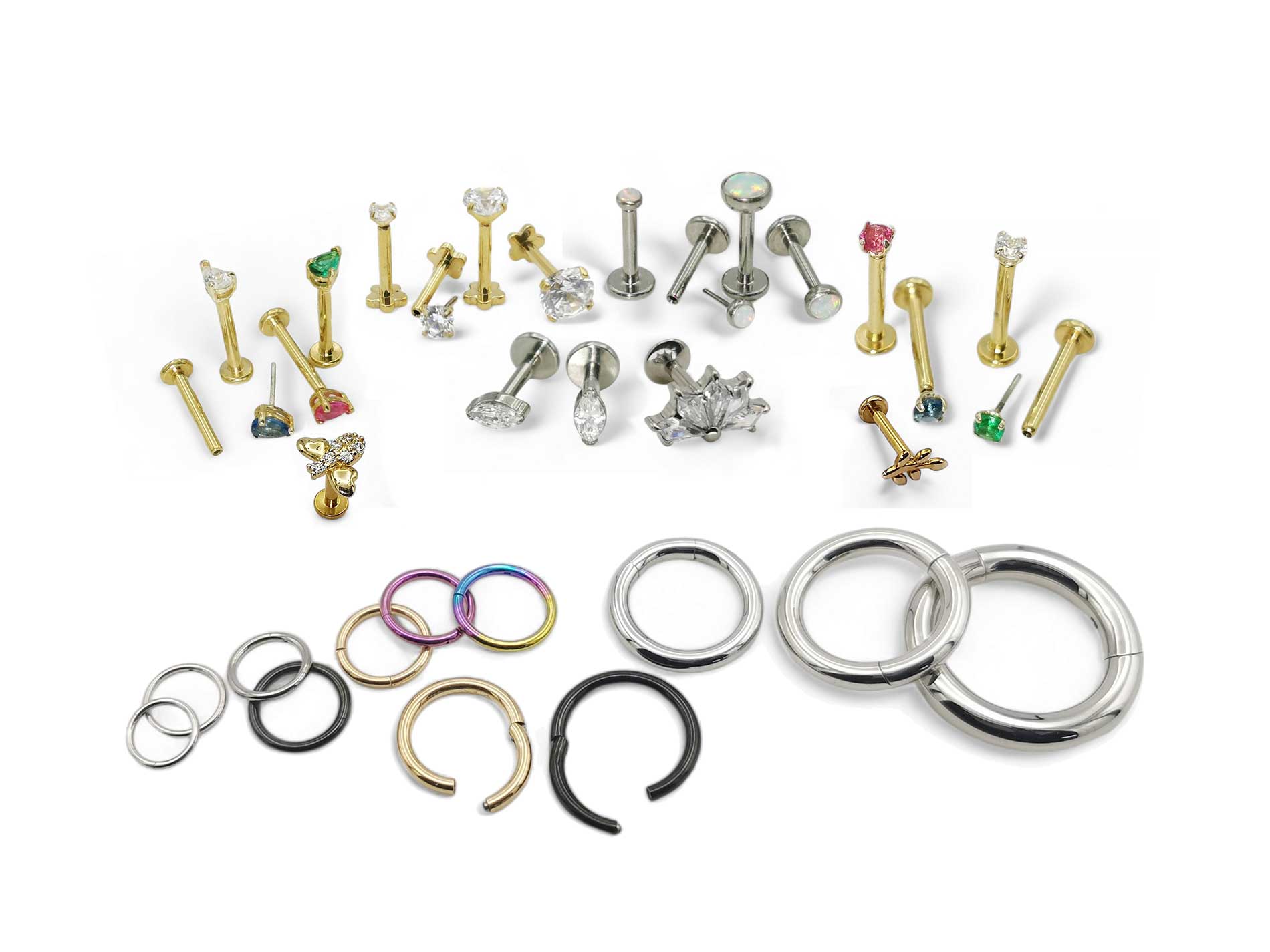 This is a selection of our best selling products including titanium clicker rings, gold jewelled ear studs, nose studs and jewelled navel bars