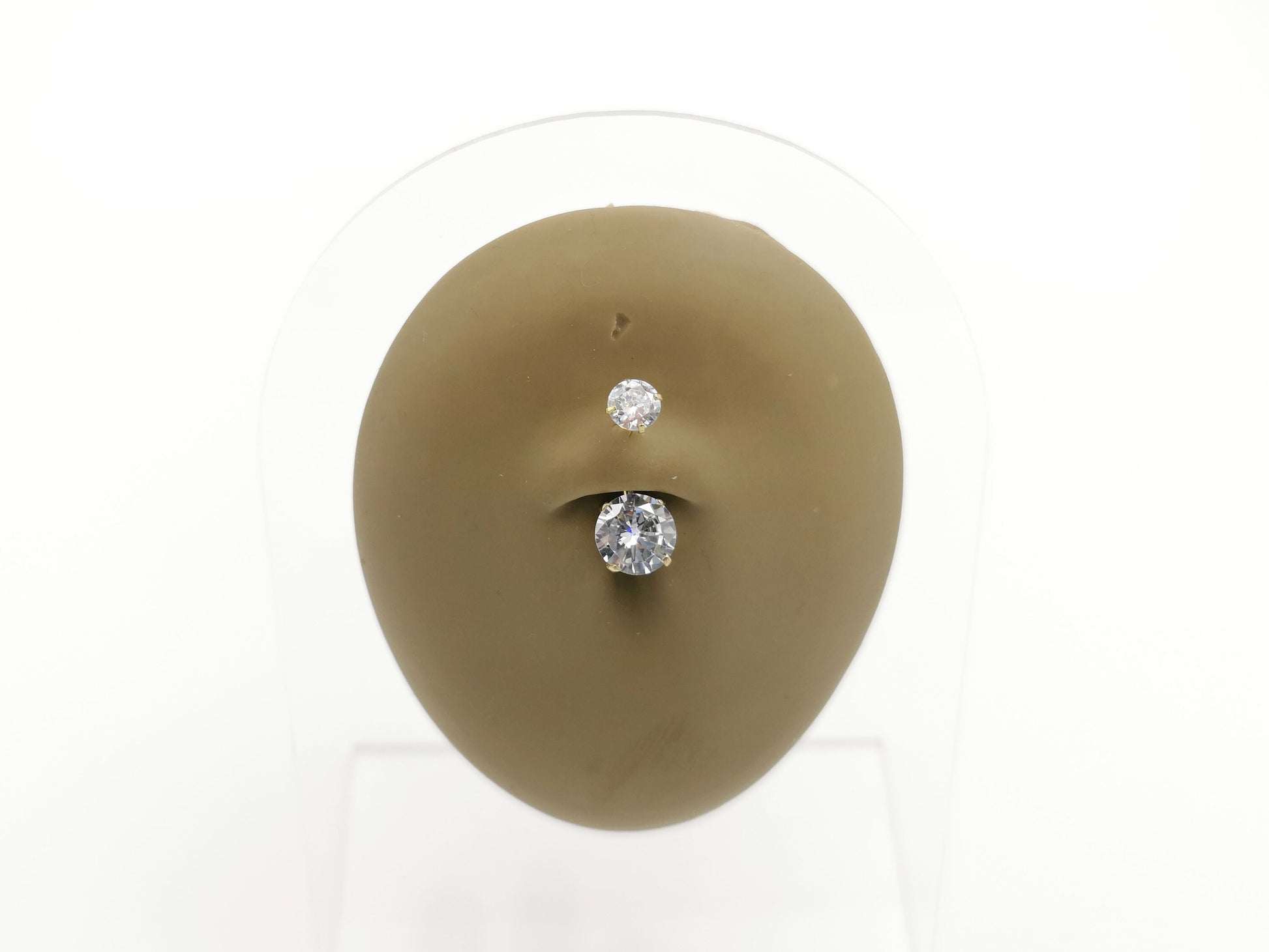 Gold titanium double jewelled claw set navel bar for 1.6mm/14g x 10mm piercings.