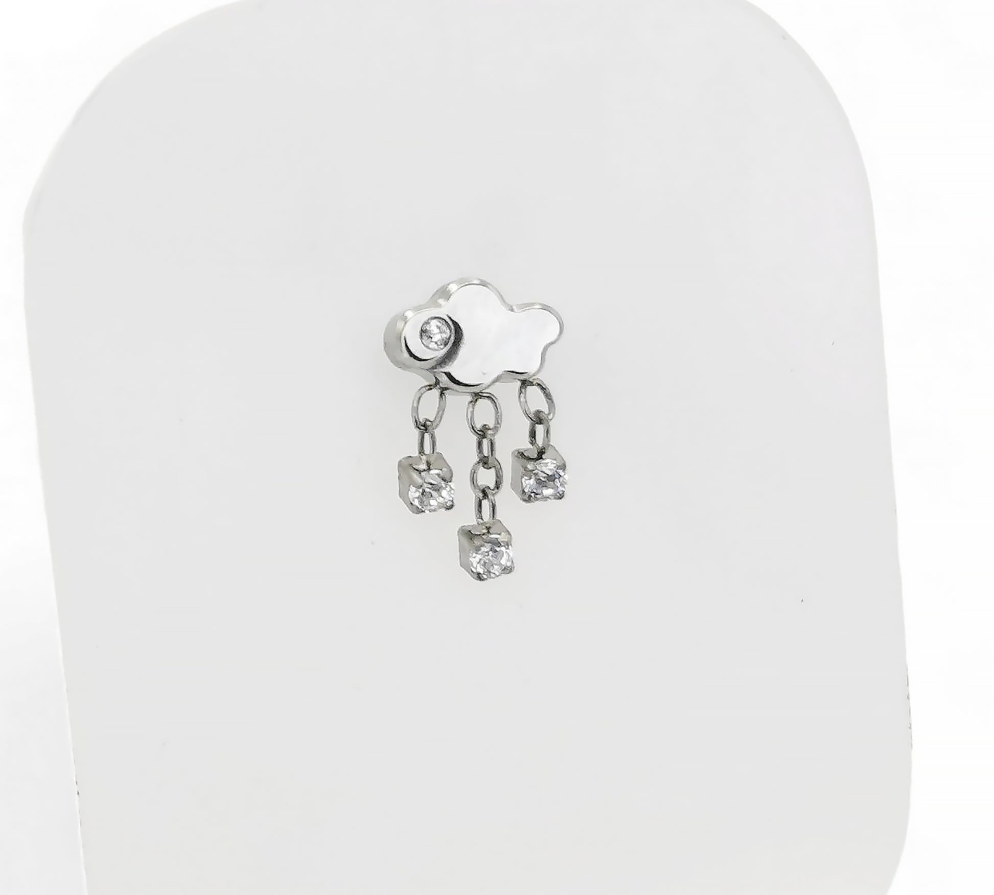Rain cloud titanium threadless stud, 1mm/18g, 1.2mm/16g