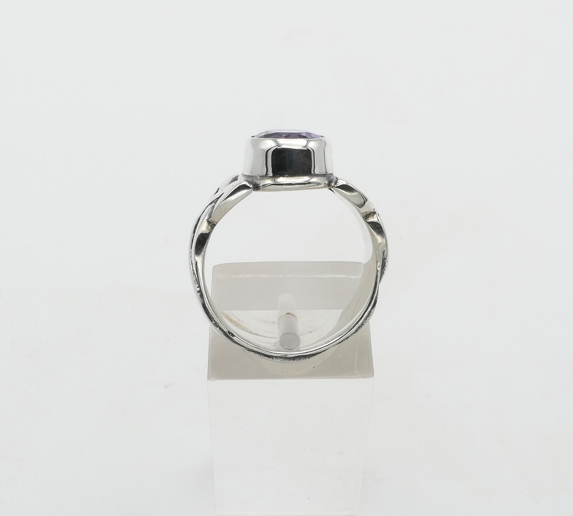 The 7mm wide band has an 8mm x 10mm bezel set with amethyst and weighs 6.4 grams.