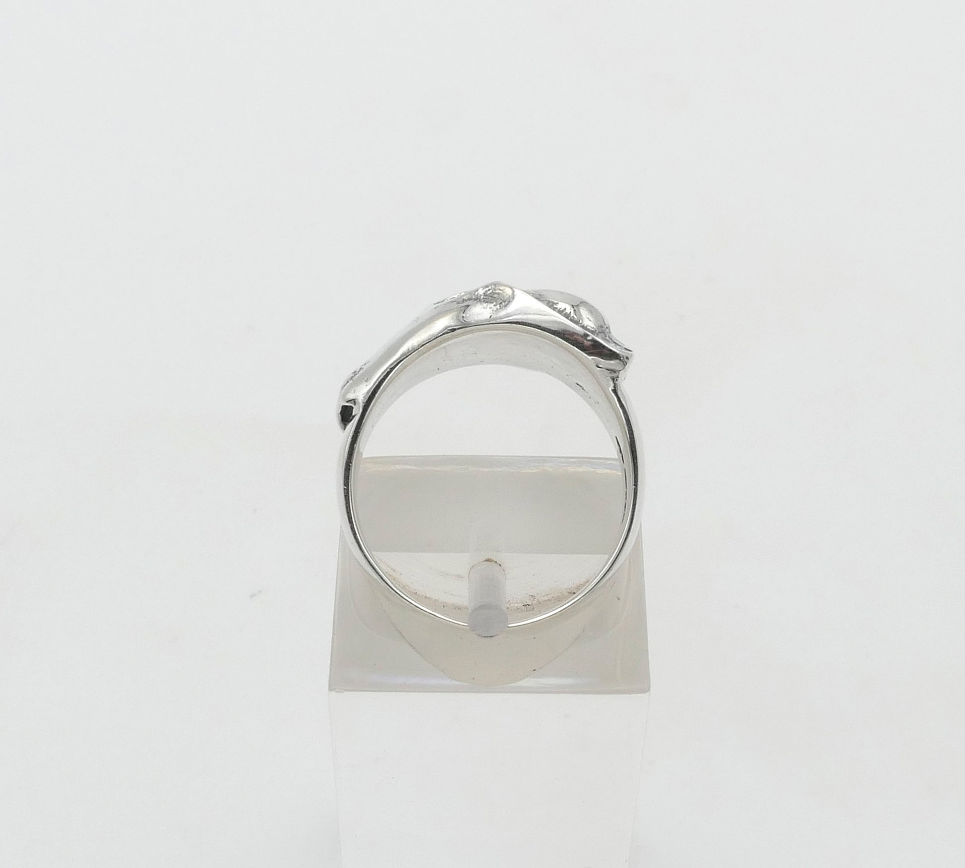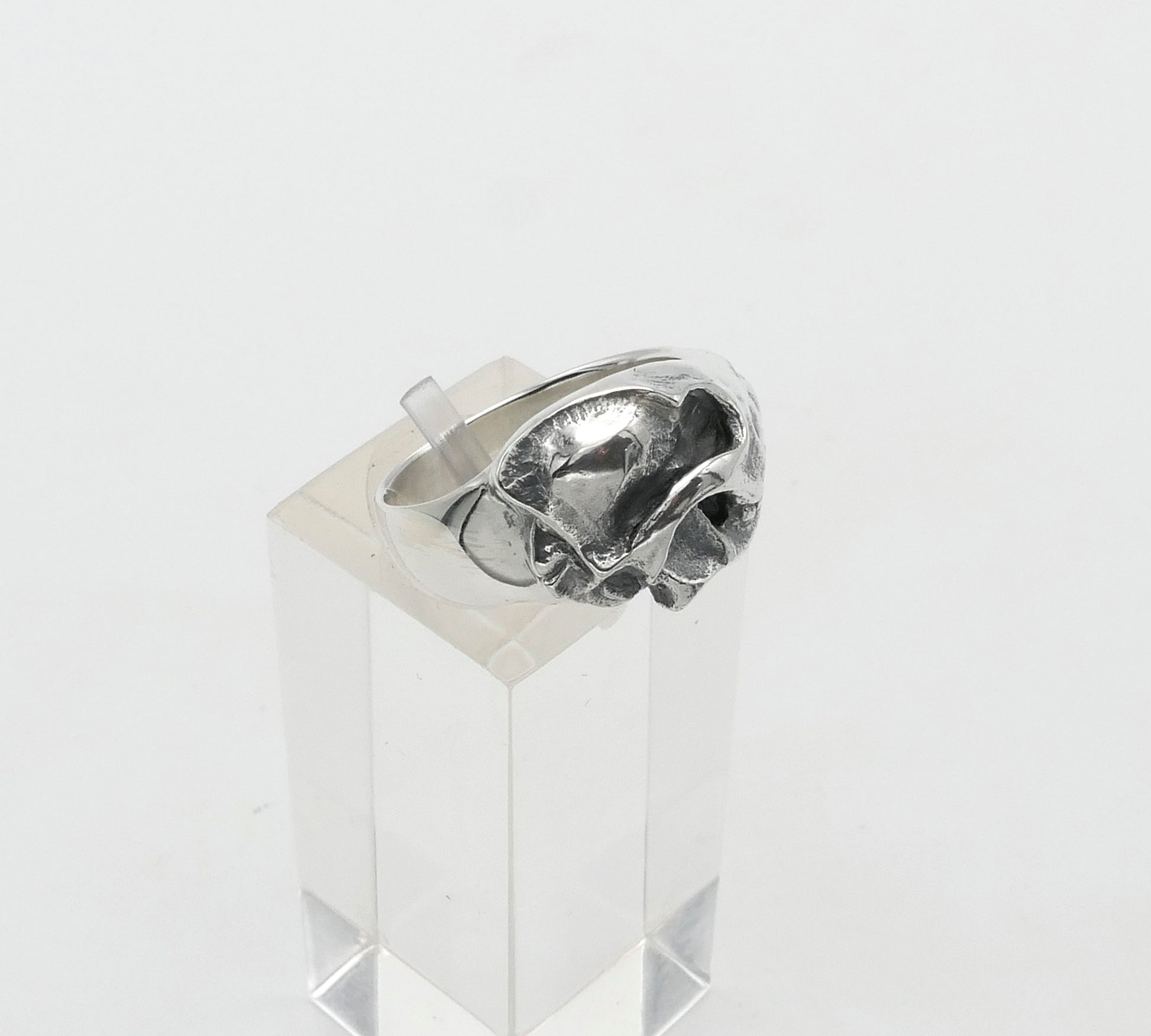 This ring features a fox skull in relief so it sits on a band more comfortably than a large skull sitting on top of the ring.