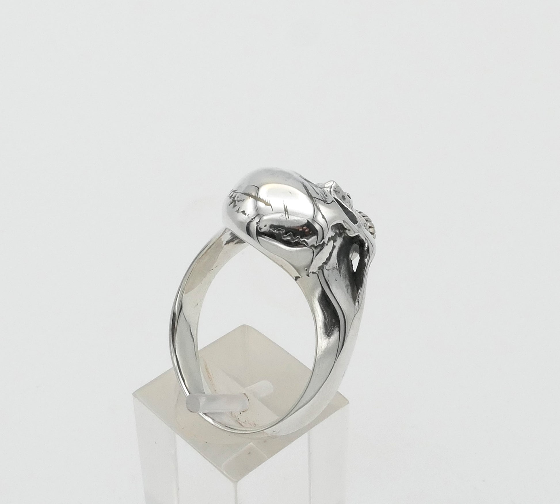 The ring is the classic silver skull sculpted without the lower jaw.