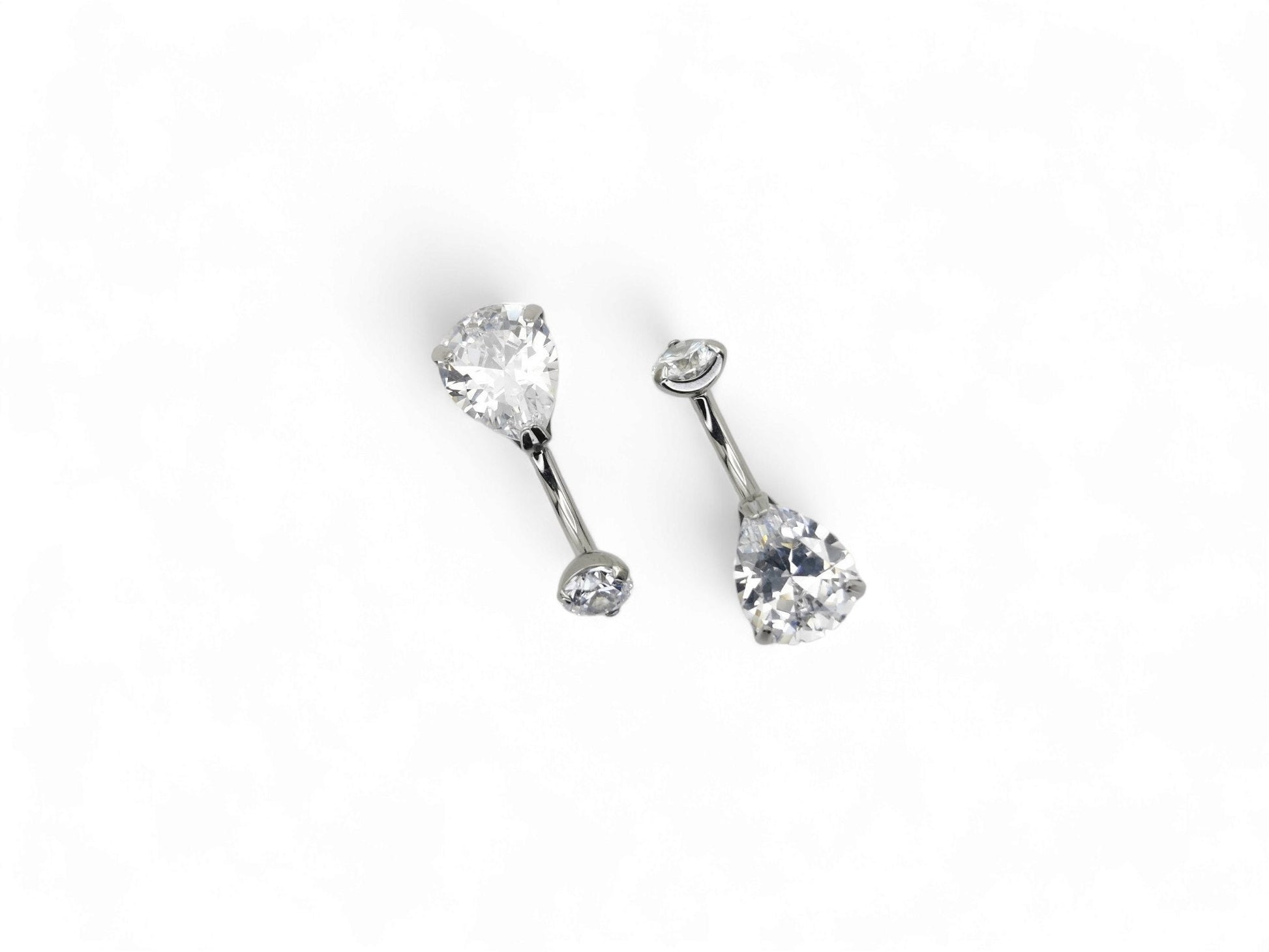Titanium jewelled claw set belly bar, 1.6mm/14g, 8mm-10mm length