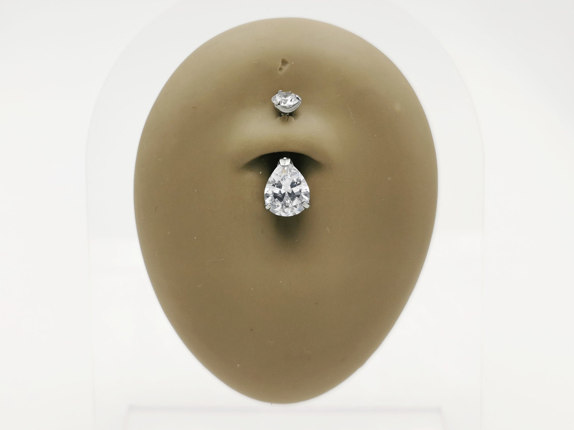Eye catching titanium double jewelled belly bar internally threaded for 1.6mm/14g x 8mm and 10mm piercings.