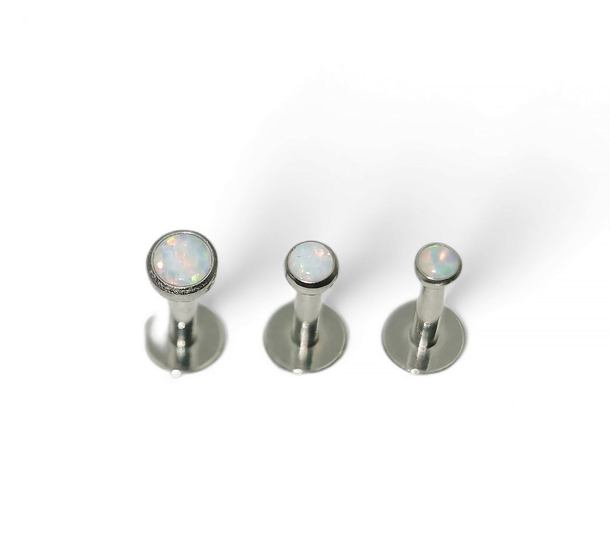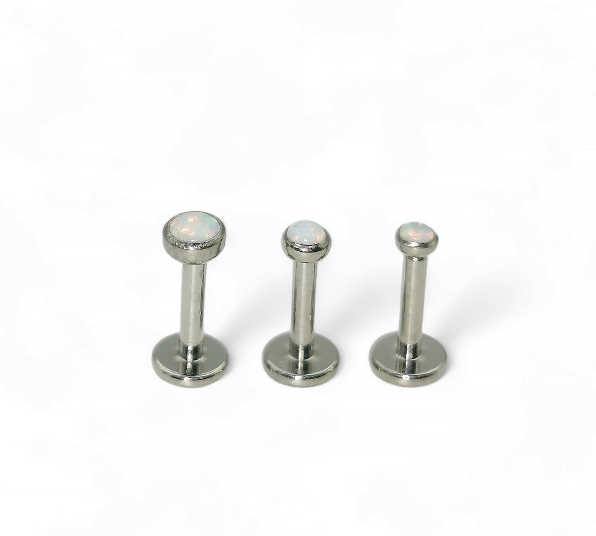 Titanium threadless opal jewelled stud 1.2mm/16g, 6mm-9mm length